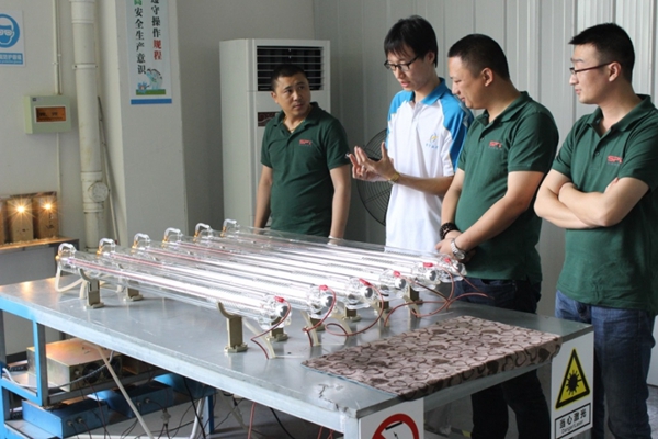 陳必勤總經理說,質量是機械設備重要競爭優勢之壹,激光管的質量與穩定性很大程度上影響機械的整體工作效果,所以我們把激光管工藝做出提高,進壹步加強我司設備競爭優勢。就我司提出的質量要求,桑魏魏總經理又陪同參觀了激光管出廠質檢(附圖三),雙方就質檢流程進行交流探討,陳必勤提出把質檢流程進壹步規範化、有序化,要把質檢置于生産之上。只有守住品質線,才能談生存,談發展。